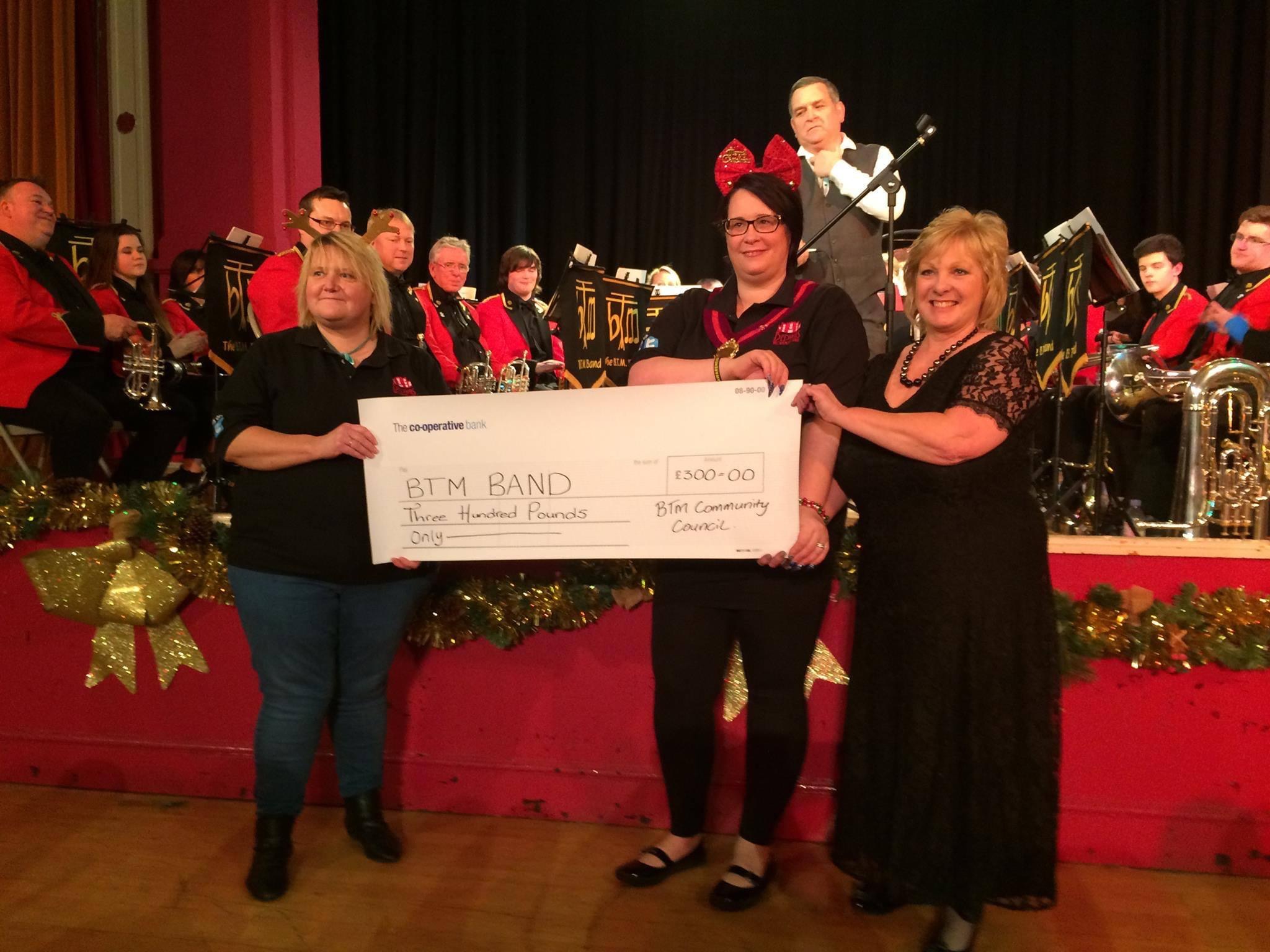 - Cllr Amanda McConnell, Vice Chair of BTM Community Council and Cllr Jill Winslade, presenting a £300 donation to BTM Brass Band- December 2015