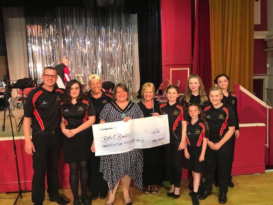 - Chair Cllr Jill Winslade presenting cheque to BTM Brass Band – June 2018