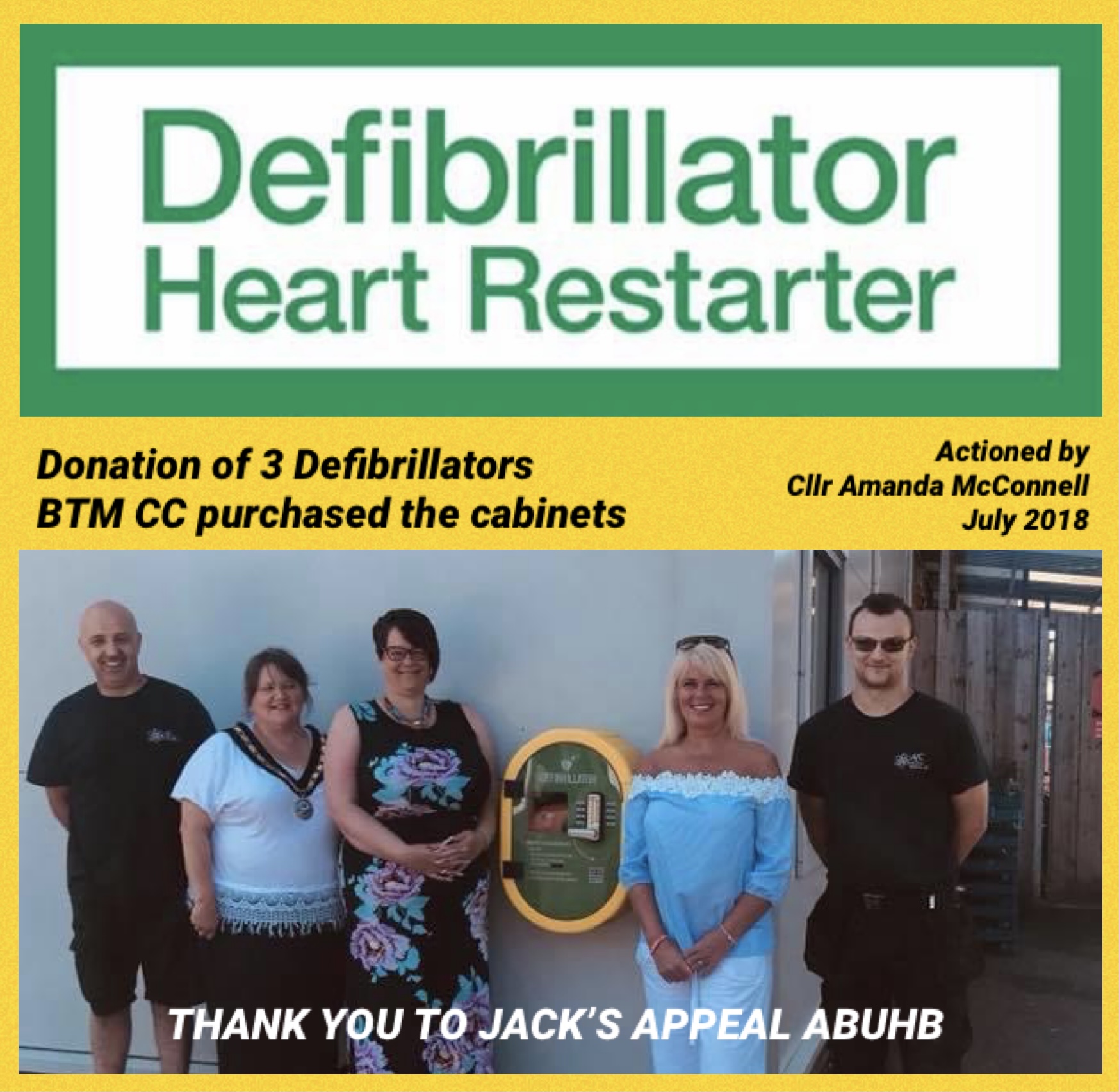 - Donation of 3 Defibrillators in the BTM Area